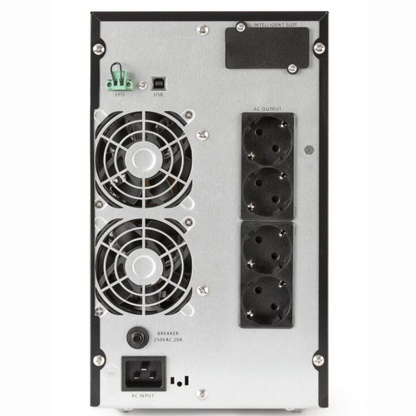 Alto factor de potencia de salida (FP=0,9) para garantizar la disponibilidad a todo tipo de cargas. Control total a través de la información de estado vía display LCD y teclado. Además de amplias opciones de monitorización y comunicación mediante el interface USB HID incorporado, el slot inteligente para tarjetas de comunicación SNMP o relés y un amplio abanico de paquetes de softwares disponibles; versión gratuita de monitorización descargable para Windows, Linux, Unix o Mac y paquetes disponibles para multiservidores o sistemas virtualizados. Para aquellas instalaciones que requieran mayor tiempo de back-up existe la posibilidad de ampliaciones de autonomía mediante SAIs con cargador extra y módulos adicionales de baterías.
