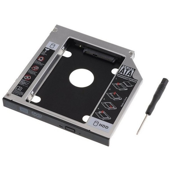 | Características | - Compatible con 2.5 pulgadas SATA de 7 mm a 12.5 mm HDD / SSD - Requisito: bahía óptica del cuaderno - Dimensiones: 129 x 128 x 12.7 mm - Material: Aluminio / ABS - Admite Windows 10, 8.1, 8, 7, Vista, XP y Linux - Compatible con SATA, SATA II y SATA III estándar - Compatible con HP, DELL, ACER, BenQ, Asus, Lenovo, Great Wall |