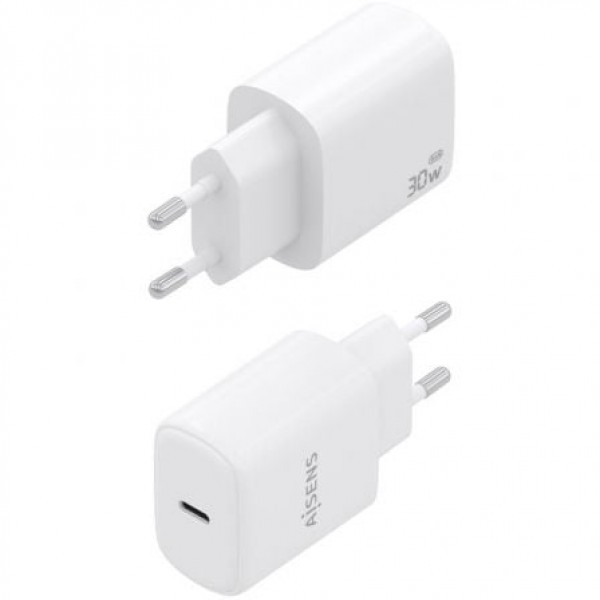 AISENS - CARGADOR GaN 30W, 1xUSB-C PD3.0, BLANCO