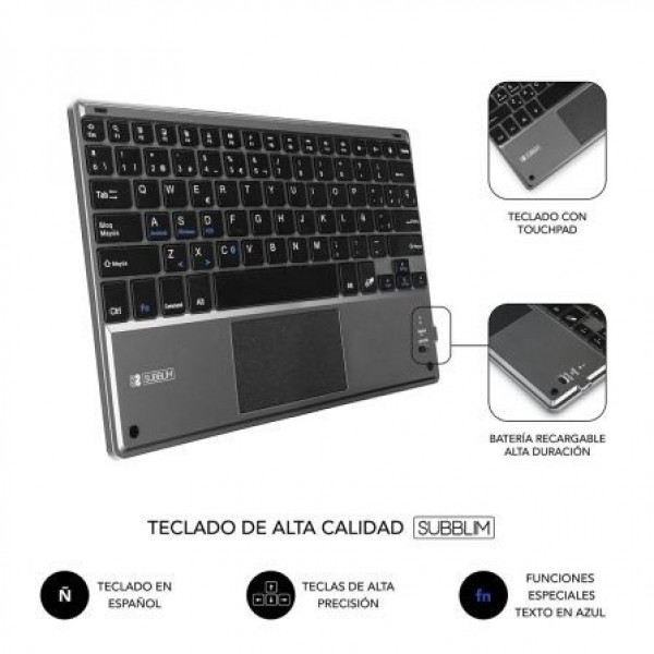 - Teclado Bluetooth extraíble con funda para Tablet de hasta 10,1".