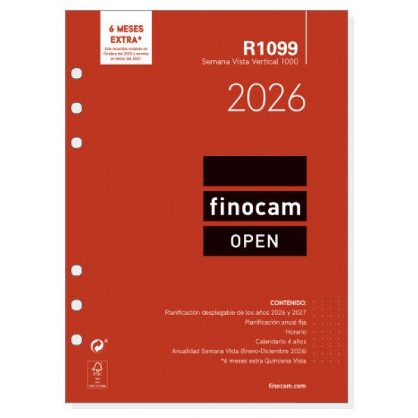 RECAMBIO ANUAL 2026 R1099 OPEN1000 155X215MM SEMANA VISTA VERTICAL FINOCAM 711520026 (Espera 4 dias)