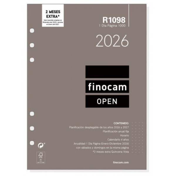 RECAMBIO ANUAL 2026 R1098 OPEN1000 155X215MM DIA PAGINA FINOCAM 711680026 (Espera 4 dias)