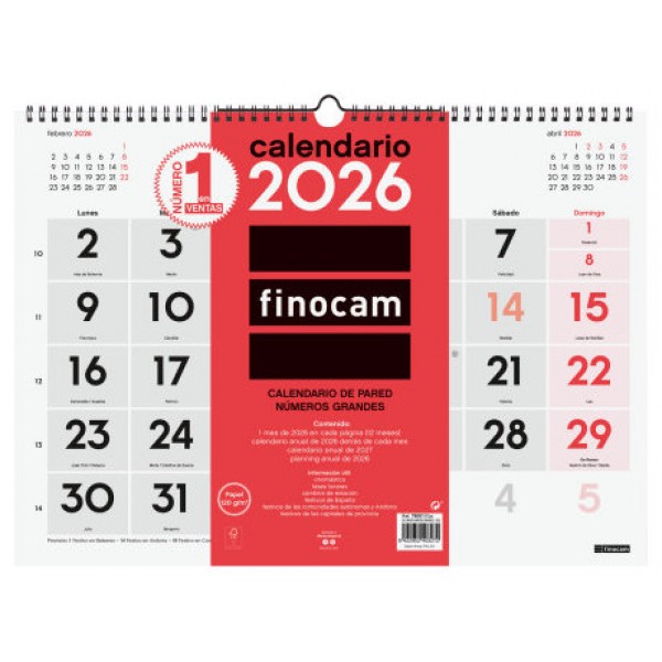 CALENDARIO 2026 NEUTRO PARED NUMEROS GRANDES M 300X210MM FINOCAM 780000026 (Espera 4 dias)