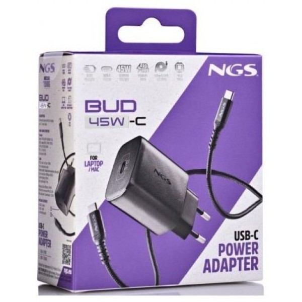 CARGADOR PARED GaN2 USB-C + CABLE 45W NEGRO NGS (Espera 4 dias)