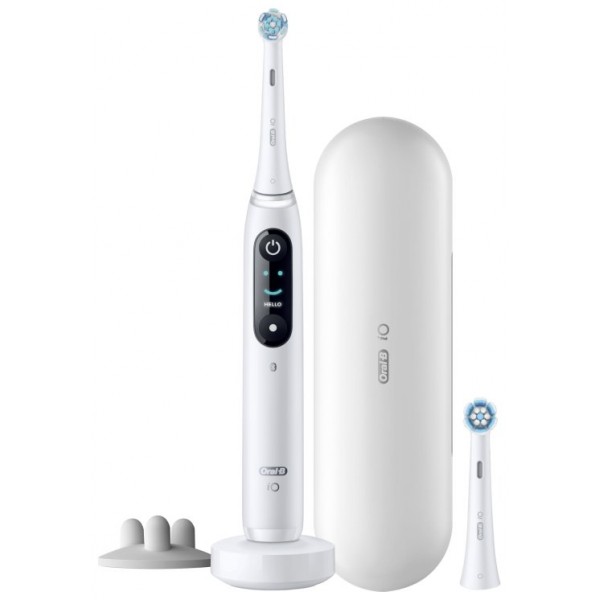 Oral-B iO 8S. Utilizar con: Adulto, Tipo de cepillo de dientes: Cepillo dental vibratorio, Modos del cepillo de dientes: Cuidados diarios, Limpieza profunda, Super sensitive, Cuidado de las encías, Sensible, Blanqueador. Fuente de energía: Batería, Tipo de batería: Batería integrada, Tiempo de recarga de la batería: 3 h. Tipo de embalaje: Caja. Número de empuñaduras incluidas: 1 pieza(s), Número de cabezales incluido: 2 pieza(s)