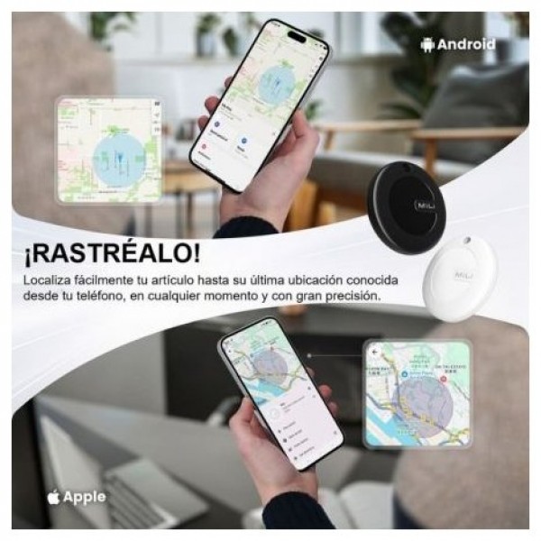 - Compatibilidad: iOS (Apple Buscar) / Android (Google Localizador)