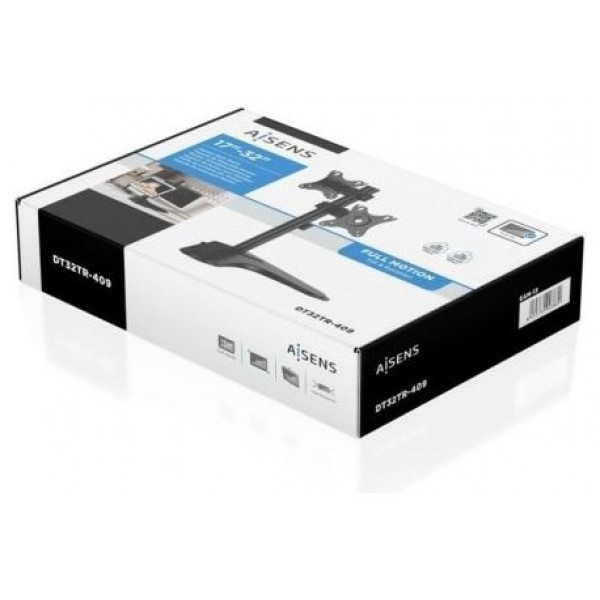 - Tipo: Soporte de mesa inclinable y rotable para 2 monitores/POS (1 pivote, 2 brazos) de 17”-32”