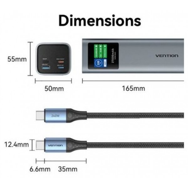 - Salida (USB-C1): 5V⎓3A; 9V⎓3A; 12V⎓3A; 15V⎓3A; 20V⎓5A; 28V⎓5A (140W máx)