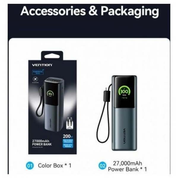 Powerbank 20000mAh Vention FHLW0/ 22.5W/ Blanca20000mAh Power Bank (Micro-USB + USB-C + USB-A + USB-..