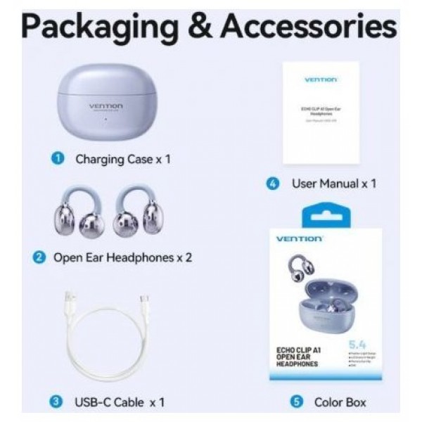 Auriculares Deportivos Bluetooth Vention Open Ear OpenBeat Echo Clip A1
