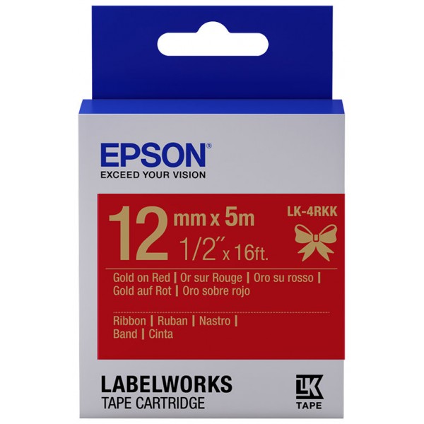 EPSON Cartucho de etiquetas de cinta satinada LK-4RKK oro/rojo de 12 mm (5 m)