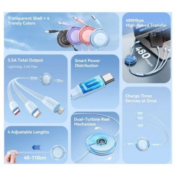 Cable USB Vention TRJBBE Retráctil
